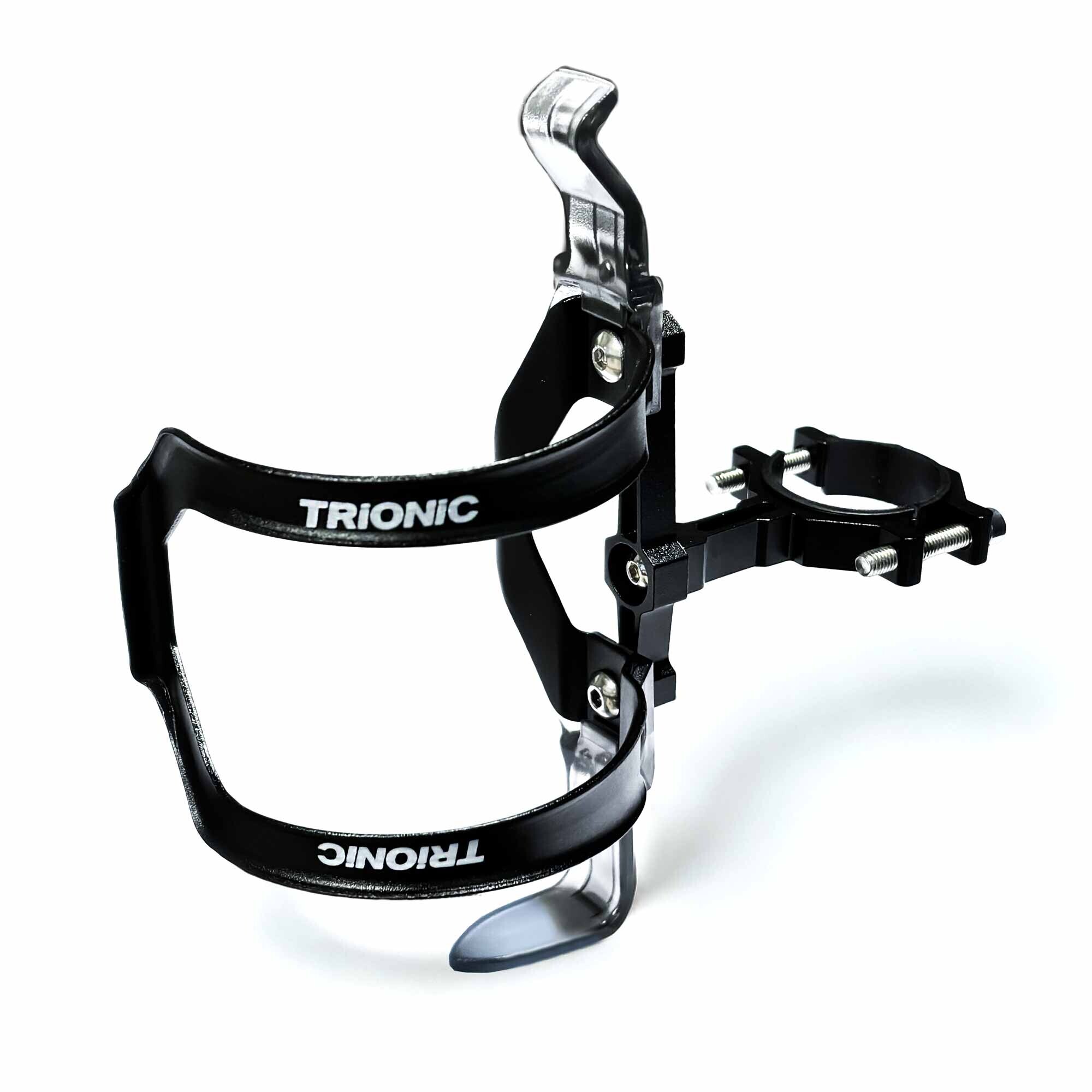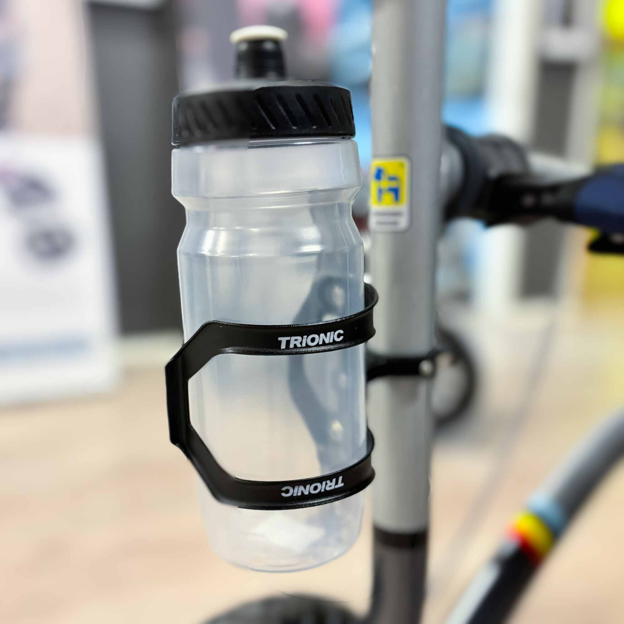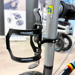 Universal size bottle holder, that is fastened to the Veloped frame with a screwed clamp. Color: black