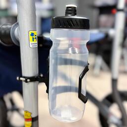 Veloped and rollator Universal size bottle holder, that is fastened to the Veloped frame with a screwed clamp. Color: black