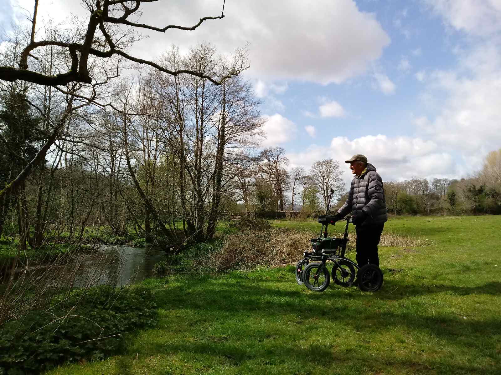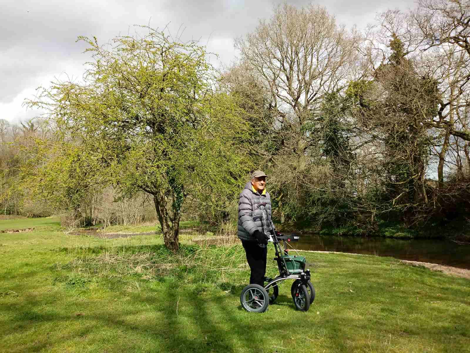 As he has a lower leg implant, he can't normally walk very long without the need to rest repeatedly …